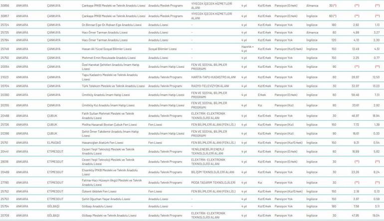 Milli eğitim bakanlığınca (meb), liselere geçiş sistemi (lgs) kapsamında öğrenci alacak okulların kontenjanları ile geçen yılki.